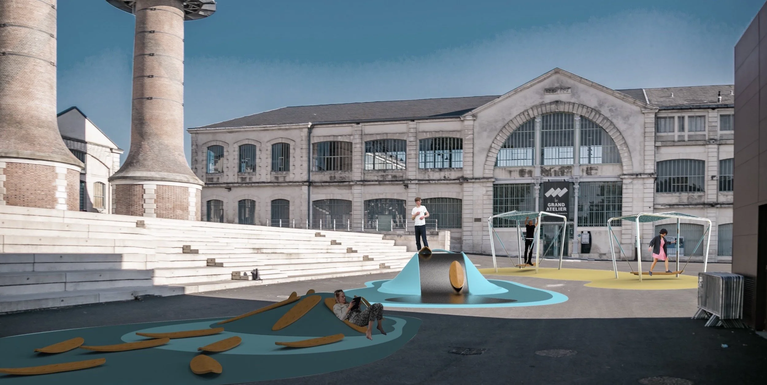 Bien sûr. Les visuels ci-dessous montrent quelques propositions faites pour les villes de Beauvais, Creil, l’Isle d’Abeau ou encore l’île de France : Nous avons fait le choix de nous concentrer sur trois disciplines ayant récemment intégré les JO et étant particulièrement représentatives de cette hybridation discipline sportive / culture urbaine que nous avons évoquée : le skateboard, le surf et le breakdance. Car elles répondent chacune à une ou plusieurs directions de notre vision originale du design actif : traiter les peurs par l’amusement, offrir l’évasion et honorer la culture urbaine. Ce sont les émotions, les sensations procurées par ces sports et les imaginaires qui gravitent autour qui nous intéressent pour inspirer et développer nos équipements.